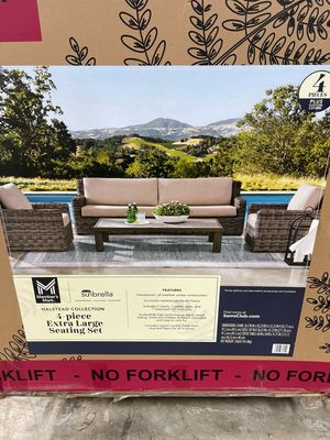 Members Mark 4 piece extra large seating set. This item is new in box. Handwoven, all-weather wicker construction. Our price is $1,199!!! This item is originally $2,459 at Sam’s Club. Over 50% savings!!